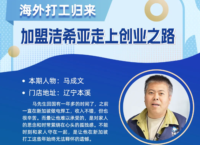 海外打工歸來,加盟潔希亞走上創(chuàng)業(yè)之路